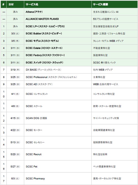 SCSC Factoryを皮切りに、ガーディアンは2026年度中に以下の展開を計画しています。