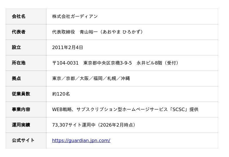 WEB戦略企業の株式会社ガーディアン(本社:東京都中央区京橋3-9-5、代表取締役:青山裕一、従業員約120名)は、製造業に完全特化したサブスクリプション型ホームページサービス「SCSC Factory(スクスク・ファクトリー)」を2026年3月11日より正式に提供開始いたします。