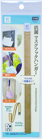 ちょっとマスクをかけておきたいとき、シーンに合わせて、形状を変えることでマスクをかけるフックになります。抗菌加工を施したスエード生地、高い形状保持力のある芯材を使用しています。