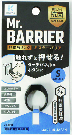 銅の力で抗菌・抗ウイルス。ATMなどの感圧式、スマートフォンなどの静電式のタッチパネルにも対応の非接触リングです。