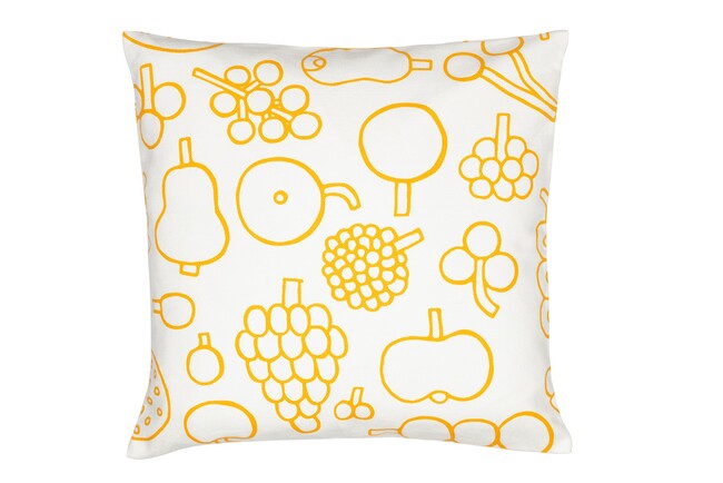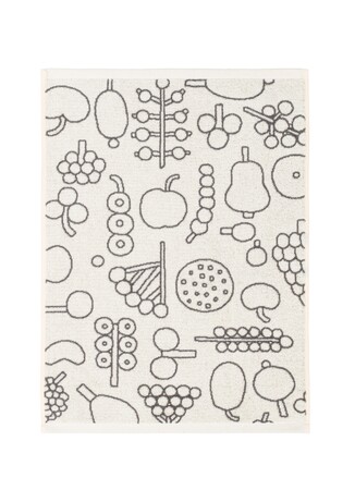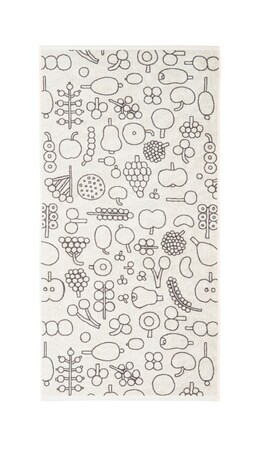 イッタラのなかでも人気のフルッタは、1960年代に発表されたグラス、フルッタのパッケージのためにトイッカが描いた手描きのスケッチが元になっ ています。リンゴや洋ナシ、ブドウなど様々なフルーツがあたたかみのあるラインで描かれたデザインです。 春らしいピンクで登場するマグのほか、オーガニックコットン 100%のグレーのハンドタオル(50x70)とバスタオル(70x140)が登場。バスマットや小さめのタオルケットとしても使用できるしっかりとした厚みが特徴です。また、イエローとホワイトのコットンリネンのクッションカバーは、お部屋のインテリアに楽しさ、明るさをもたらします。