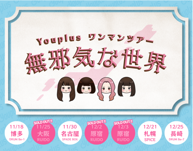2022年11月から全国6年をまわる初のライブハウスツアー『無邪気な世界』を開催。大阪と東京2daysが完売となり、Youplusにとって初めての全国ツアー、そして初の有歓声ライブは、新たな魅力を発揮する場となった。