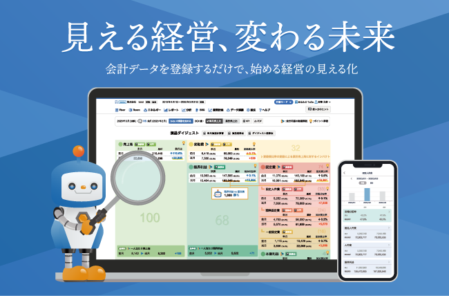 株式会社YKプランニングが企画・開発・販売・サポートする経営支援型会計クラウドサービスです。多種多様な会計ソフトのデータに対応し、会計データの自動チェック機能から月次の経営状況の把握・現状分析や経営計画の作成など多彩なコンテンツを提供しています。また、企業や会計事務所だけでなくコンサルタント、金融機関等とデータを共有する機能も備えており、無料でご利用を開始していただけるようになっています。インターネットブラウザやスマホ・タブレットなどマルチデバイス対応をしています。