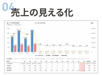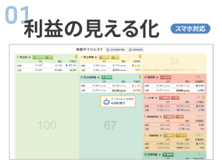 bixid(ビサイド)を使うと、毎月の損益計算書がビジュアル化され、前年実績と対比しながら売上・原価・経費・利益の状況を把握することで新たな経営課題を発見できます。