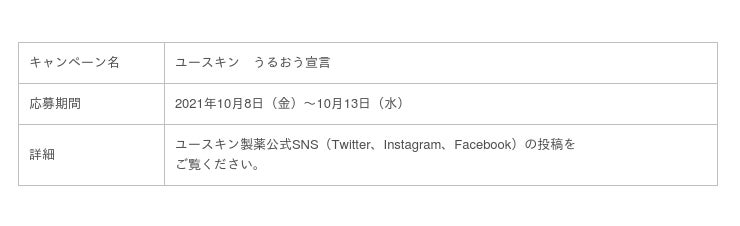 ユースキンを使ったハンドケアで毎日がんばる手をいたわりたい、と宣言してくださった方の中から抽選で200名様に、ユースキンサンプルをお届け。ユースキン製薬が推奨するハンドマッサージをして毎日ケアをしながら、手がうるおっていく様子をSNS上に投稿していただきます。秋になり手肌の乾燥を感じ始める時期です。早めのケアを心掛けることで、手荒れの重症化を防ぐために、一足先に「うるおう宣言」へ参加してみてはいかがでしょうか。