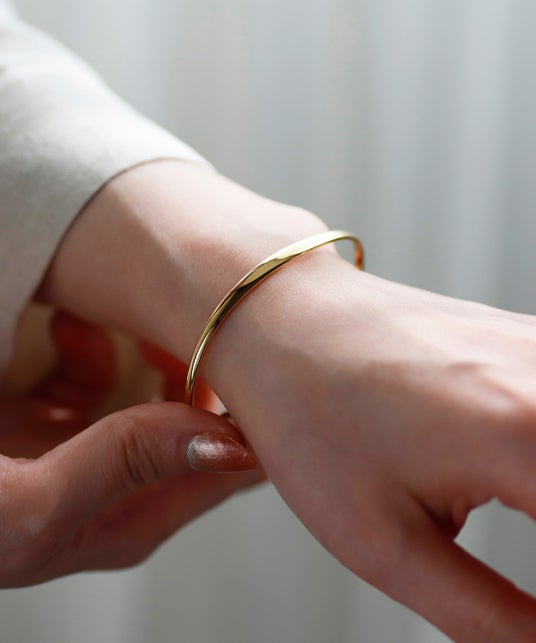 洗練されたデザインで年齢を問わず着けられるバングルは、記念日のプレゼントにぴったり。サイズ選びの心配がないのもバングルならではの魅力です。