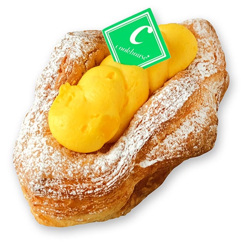 夏を楽しむマンゴークリームデニッシュ爽やかな酸味と濃厚な味わいがおいしい果肉入りマンゴークリームをクロワッサン生地にトッピング