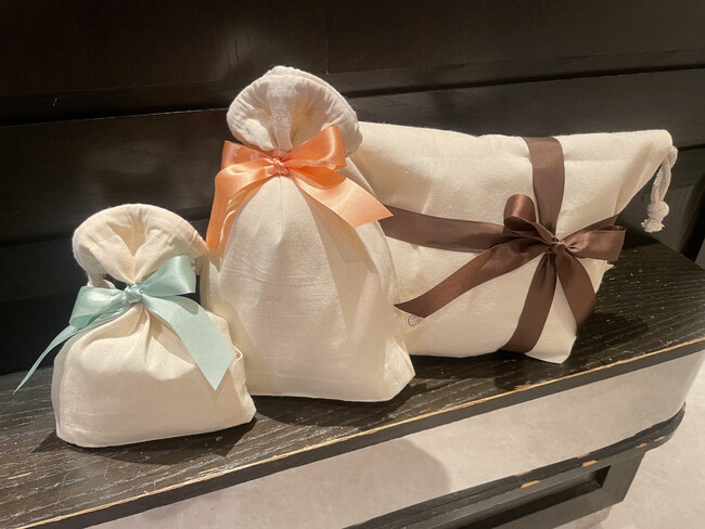11月8日(火)より、「エシカルな暮らしLAB」では、オーガニックコットン素材の巾着袋のラッピングを開始しました。ラッピングとして使い終わっても、捨てずに巾着袋として長くご使用いただけます。リボンは植物由来で生分解性のアセテートを採用いたしました。プレゼントを贈る側も、貰う側も、罪悪感のない素材にこだわりました。