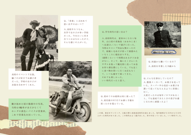 孫や子どもが、おじいちゃん・おばあちゃんにインタビューをして、人生史をつくっていく本企画。写真をきっかけに話すことで、普段聞けないエピソードがたくさん出てきました。