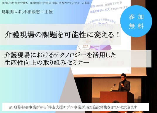 2024年8月7日(水)、令和6年度介護ロボット等の開発・実証・普及広報のプラットフォーム事業鳥取相談窓口である公益財団法人介護労働安定センター鳥取支部主催、第1回研修会「テクノロジー活用による介護現場の生産性向上研修会」に代表鎌田が講師として登壇いたします。