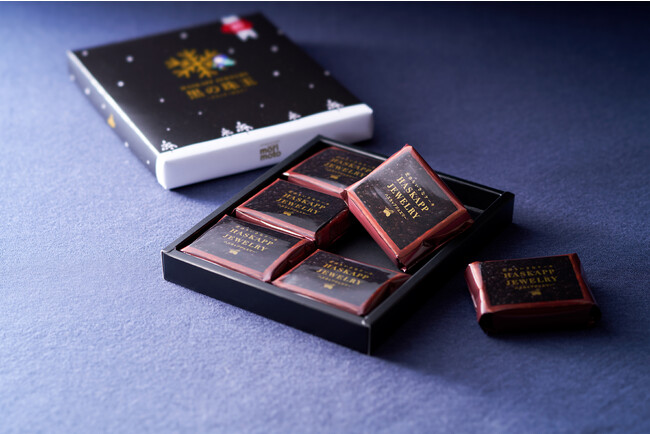 「北のちいさなケーキ ハスカップジュエリー」は、ハスカップで作るジャムと北海道産バターを使用したバタークリームを薄焼きクッキーでサンドし、クーベルチュールチョコレートで縁取りした、しっとり食感のケーキのようなスイーツです。「黒の珠玉」は、道内でも有数のハスカップの産地・厚真町のハスカップを使用し、「レミーマルタン」のコニャックブランデーを合わせた芳醇な香りが広がるジャムをココアクッキーで挟み、ビターなチョコレートで縁取りしています。