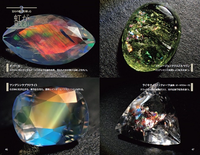 さらに、インクルージョンや虹が見えるなど、一味違った宝石の魅力が堪能できるようなページも掲載。