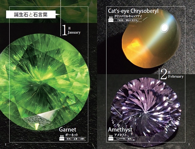 また、巻頭には新基準の誕生石を石言葉と一緒に紹介したページを掲載しており、最後に一覧ページもありますので、ご家族や友人などとお互いの誕生石について語り合うのも楽しいと思います。