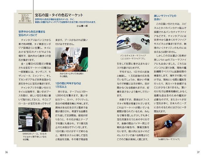 ほかにも、スリランカやタイでの買付の様子を語ったレポート記事や、宝石撮影で困ることが多いポイント別のアドバイス、ジュエリー以外での宝石の楽しみ方提案など、日々宝石にまつわる多くの情報を発信しつづけるKARATZならではの観点や拘りから作成したページも多く、隅々まで楽しんで頂ける一冊が完成したと自負しております。