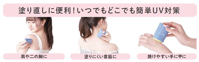 スティックタイプの日焼け止めで、いつでもどこでも手を汚さずに塗り直しができるのが特長です。