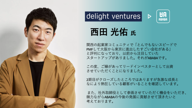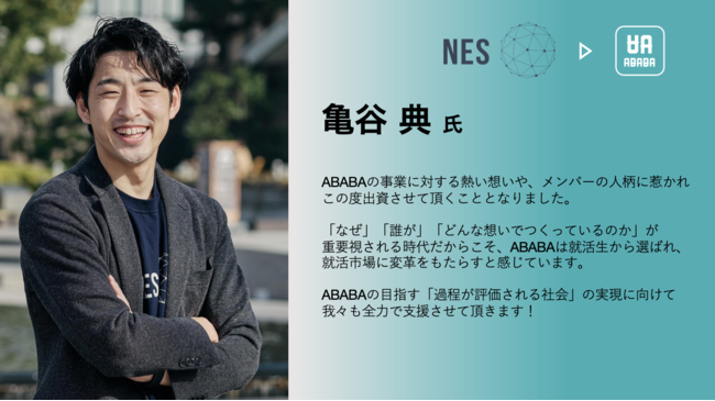今回の調達でより多くの就活生にABABAを届け、後悔のない就職活動を送ってもらえるよう全力で邁進して参ります。 - CEO 久保 駿貴