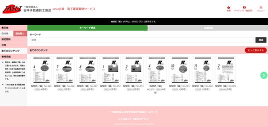 【「日本手話通訳士協会(JASLI)会員 電子書籍書棚サービス」画面】