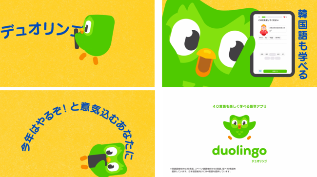 世界でもっともダウンロードされている無料語学アプリ「Duolingo」を提供する Duolingo, Inc. (本社所在地:Pittsburgh, USA, 以下Duolingo)は、1月7日(土)から全国CM「デュオリンゴ ゴロゴロ言語が学べる」篇の放送を開始します。「デュオリンゴロゴロ」というフレーズが頭に残るオリジナルソングとともにDuolingoのキャラクター「Duo」くんがゴロゴロしながら語学学習ができることをアピールする、かわいらしいCMです。新しい1年がはじまり、「今年はやるぞ!」と語学学習に意気込む方々の背中を押したいと考え、本CMの放映が決定しました。