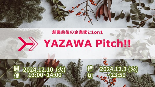 シード 特化のベンチャーキャピタルであるYazawa Ventures(本社:東京都渋谷区 代表取締役:矢澤 麻里子 以下:当社)は、創業前後のスタートアップへの出資相談機会、及び壁打ちメンタリングを行う『YAZAWA Pitch !! 』を開催することをお知らせいたします。