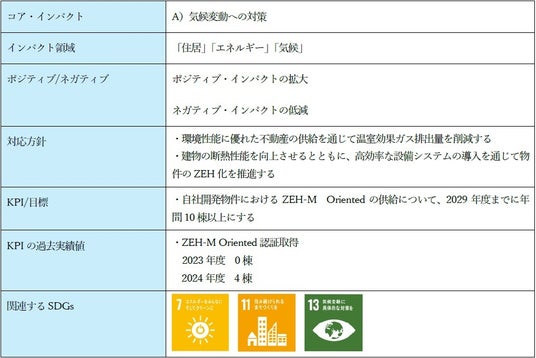 本取り組みにあたっては、SDGsの目標に対して特にインパクトを与える分野を中心に、コアインパクトを特定し、KPIを設定しました。具体的には、気候変動への対策、高品質な住宅の供給、ワークライフバランスの向上につながるKPIと、目標達成に向けた具体的な施策が選定されました。目標の達成状況については、継続的にモニタリングが実施されます。なお、本 PIF およびオリックス銀行の PIF 実施体制について、株式会社格付投資情報センター(R&I)より、国連環境計画金融イニシアティブのポジティブ・インパクト金融原則に適合している旨の第三者意見を取得しております。