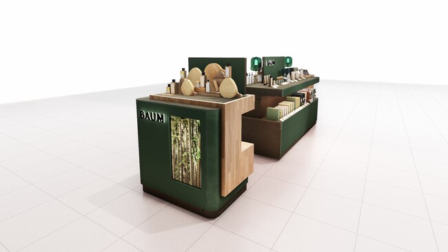 「樹木との共生」をテーマに掲げるスキン&マインドブランド「BAUM」は、2023年12月5日(火)、リニューアルした関西国際空港第1ターミナルビル 国際線出発エリアに空港内初となる免税店をオープンします。BAUMコーナーのディスプレー什器には、製品の木製パーツにも使用されているオーク(ナラ)の木材が使われており、空港においても樹木の心地よさや温もりを感じながら、ゆっくりと商品を体感できる空間となっています。