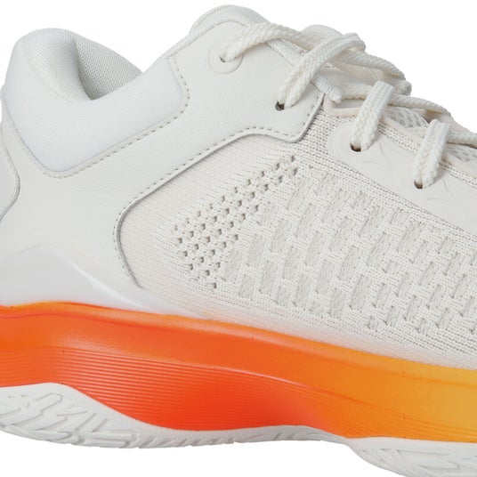 アウトソールは全方向にグリップを発揮するオリジナルパターン。コートとの接地面をフラットにした形状は車のタイヤに着想を得た設計で、吸い付くような粘りのある強力なグリップ力を実現。