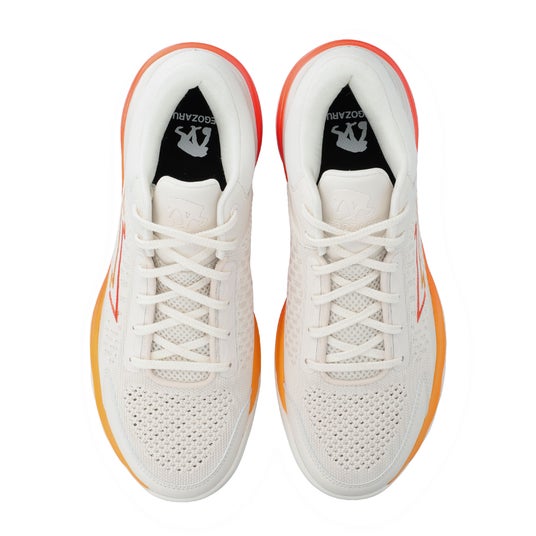 EGOZARUブランドとして3rdモデルとなるこの新作シューズは、競技者の「思い通りのフットワーク」を実現するコートに吸い付くような粘りのある強力な「グリップ力」が特徴。もちろんクッション、反発、安定性も十二分に兼ね備えたハイパフォーマンスモデルに仕上がっている。「ブレイズ」というその名前のとおり「燃え上がる炎」のようなHOTなカラーリングも魅力。