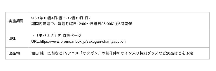 「TVアニメ「サクガン」サイン入りグッズ チャリティオークション」概要