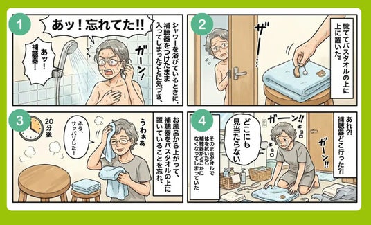 補聴器に慣れたころ、補聴器をしたままお風呂に入ってしまった(画像はAIで生成)