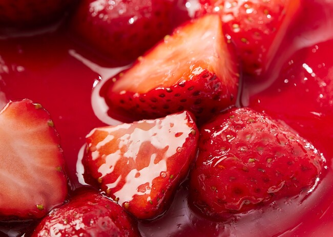 3)いちごソースのグラサージュをまとい、見た目と香りに華やかさを