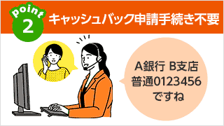 キャッシュバックが早い!!なんと《最短1ヶ月後には、指定の口座へ現金をお振込》いたします♪