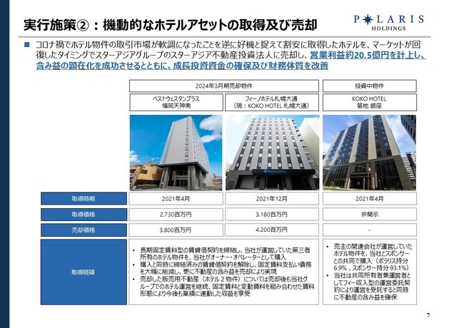実行施策2.:機動的なホテルアセットの取得及び売却
