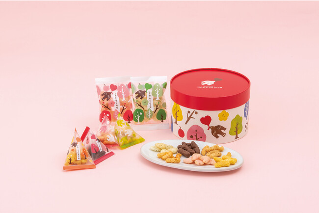 2月14日はバレンタインデー。世界各地で恋人同士が愛を祝う日とされています。日本では、女性が男性にチョコレートを贈る習慣がありますが、近年は「感謝チョコ」や「自分チョコ」など、「大好き」や「ありがとう」「頑張った」の気持ちを、家族や友人、自分自身に贈る方も増えています。『とよす洛味堂 和のバレンタイン』は、ベーシックな味付けのあられをバラエティ豊かな味と食感でお作りした、甘いものが苦手な方にも楽しんでいただけるバレンタインギフト。2023年で17年目を迎え、パッケージデザインを一新。ブランドモチーフの「らくみ鳥」が森で育てたハートの実を、大切な方へ届けるというストーリーを、彩り豊かなパッケージデザインに仕立てました。カジュアルなプレゼントにお使いいただける単品と、ご家族でお楽しみいただける詰合せもご用意しました。この時期だけの限定品を、ぜひお試しください。