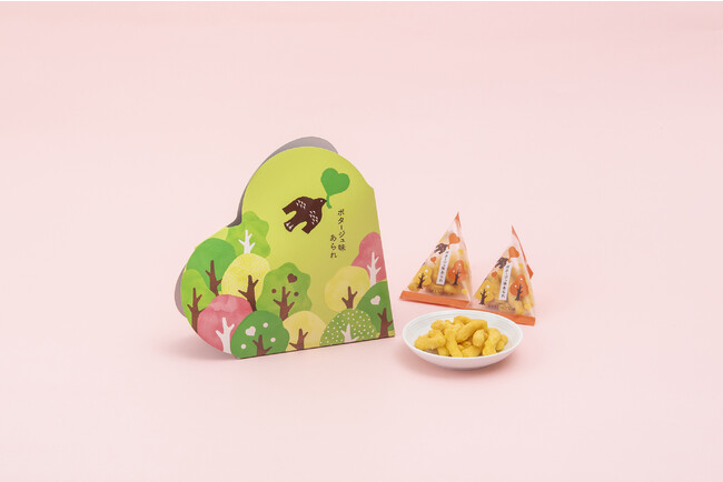 北海道産スイートコーンパウダーを使用した、甘みのあるポタージュを表現しました。フランス産ゲランドの塩と、イタリア産黒トリュフを使った「トリュフ塩」を使い、芳醇な香りをプラス。ワンランク上のポタージュの味です。商品名:ポタージュ味あられ