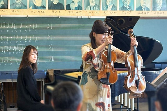 この「学校クラスコンサート」は、2005年のスタート以来、延べ1,430校・144,970人の子どもたちに届けられてきました。全国には、音楽専科の先生がいない学校も多く存在します。生の伴奏で校歌を歌ったことがない、作曲家や楽器にふれる機会がない。そんな子どもたちが、確かにいます。