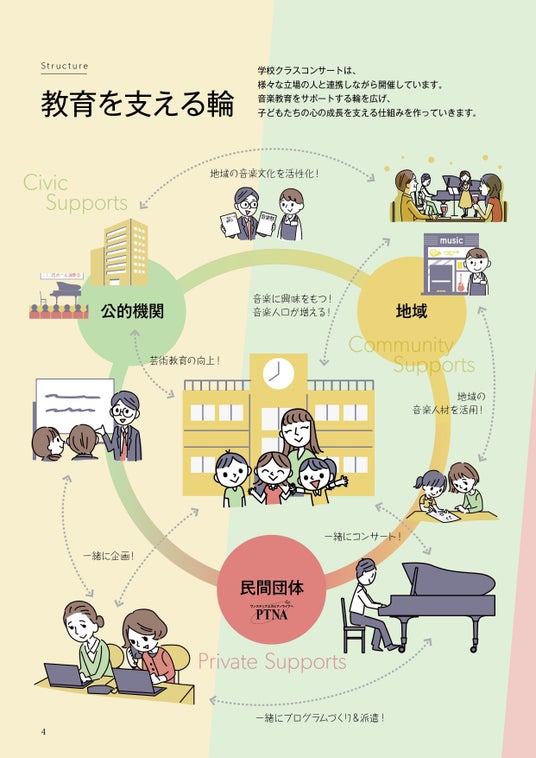 一般社団法人全日本ピアノ指導者協会(ピティナ)は、全国各地の企業・団体と協力・連携し、パートナーを募り全国すべての小学校での「学校クラスコンサート」の開催を目指します。