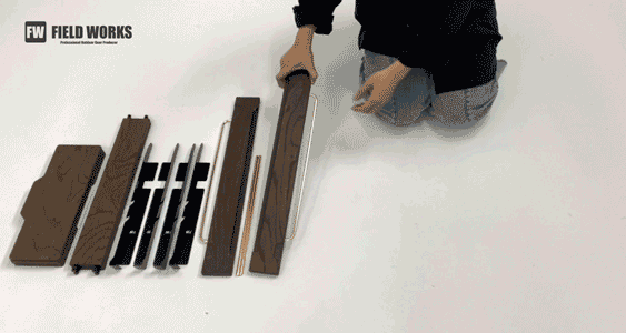 FW WOOD TABLEの組み立ては、非常にシンプル。決まった場所にパーツを差し込むだけで誰でも簡単に設置できます。