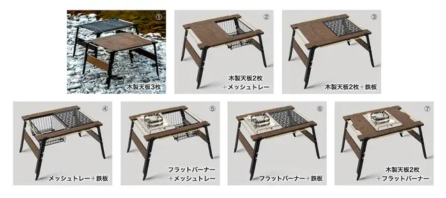 本製品は、天板を7段階自由に組み合わせられる仕様で、その日の気分で自由にカスタムできる遊び心と機能性に富んだ製品です。また白樺の木を使用することで耐久性と品格が増し、より上質な雰囲気を醸し出してくれます。63cmのバッグに収納できて持ち運びやすく、60秒で設置できる利便さ。多くのブランドが出されているキャンプギアの規格を考慮したサイズで作っているため、既に持っている手持ちのギアを組み合わせることが可能。テーブル1つで自由自在にカスタムすることができます。