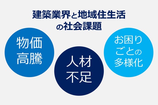 近年の物価高は、原材料の不足、材料費や人件費の高騰という形で、消費者のみならず大手や中小企業の経営を圧迫し続けています。さらに、恒常的な人材不足という社会問題は、私たち建築業にも大きな課題となっているのです。