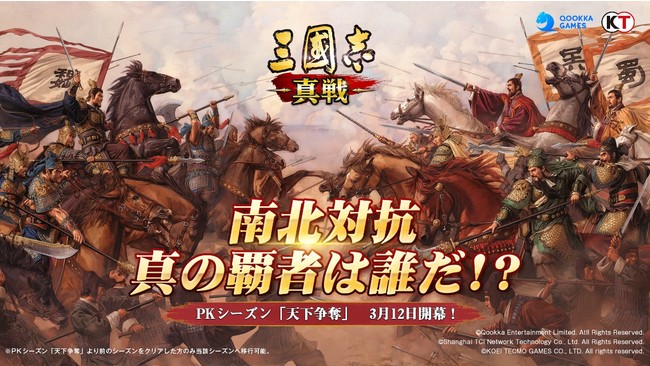 Qookka Entertainment Limitedが株式会社コーエーテクモゲームスの歴史シミュレーションゲーム『三國志13』のIPを使用し、同社監修の元で開発されたスマートフォン向けゲームアプリ『三國志 真戦』。同ゲームは、2022年3月12日より、PKシーズン「天下争奪」を開始することをお知らせいたします。