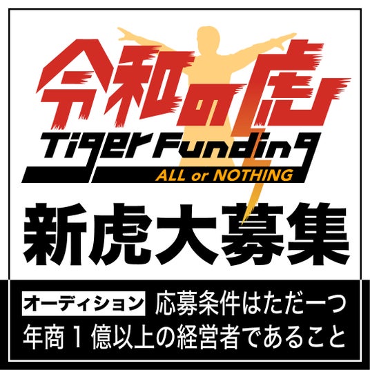 『その想いを金に換えろ!』--百戦錬磨の虎たちと肩を並べる、新たな虎(出資者)の発掘へ。U-33(33歳未満)の若手や、圧倒的な個性を持つ挑戦者のエントリーを受付中。