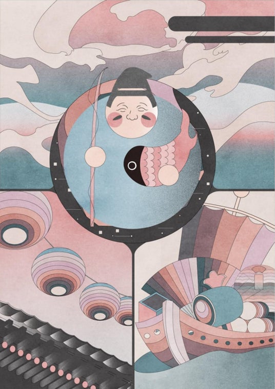 また、昨年度入社して目の当たりにした「十日戎」で賑わう駅周辺のイメージを、新しくなった今宮戎駅の空間にふさわしく、明るく優しい絵柄と色合いに落とし込んでいます。