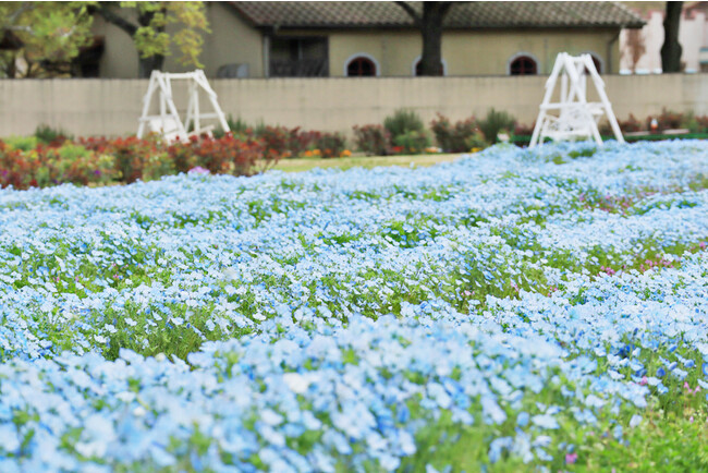 春爛漫!約5,000平方メートル の広大な花畑で、続々と開花ラッシュ。ネモフィラやチューリップ、菜の花が皆様をお出迎えします。