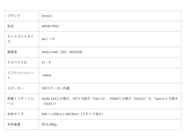▼ウルトラワイドモニター『Innocn WR40-PRO』