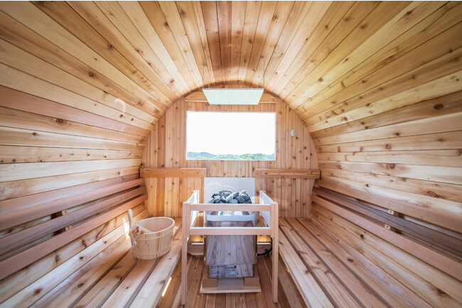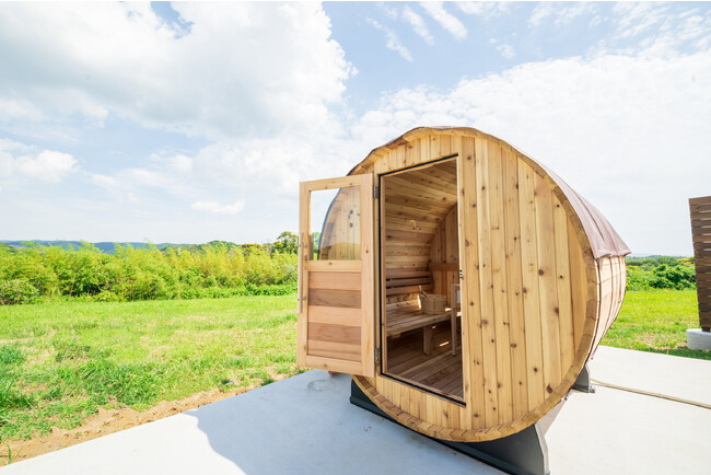 EXECUTIVE SUITEのお部屋には、GLAMPROOK初となる「プライベートサウナ」を完備。抜けるような空の下、大自然を五感で感じながら、極上の「ととのう」をご体感いただけます。