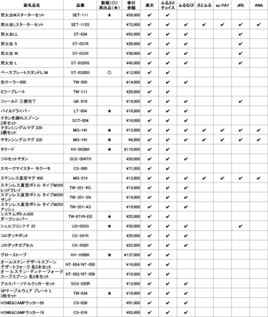 ●4月22日(金)12:00より新規返礼品、再出品する返礼品を含む、スノーピークの32品目を楽天ふるさと納税、ふるさとチョイス、ふるなび、さとふる、JRE MALL ふるさと納税、au PAYふるさと納税、ANAのふるさと納税に出品
