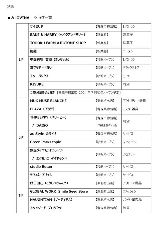 株式会社JR東日本青森商業開発(本社:青森県青森市柳川一丁目2番3号 代表取締役社長:紺野洋紀)は、JR青森駅東口ビル「&LOVINA」新業態ショップ・移転ショップを含む、4ショップをご紹介します。また、ラビナも段階的にリニューアル!まずは、一部店舗にて、3月より改装のための閉店セールが始まります。