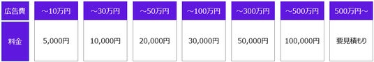 RPP広告の月額広告費に応じた料金設計となっております。(広告費は割引前の広告費が対象となります。)