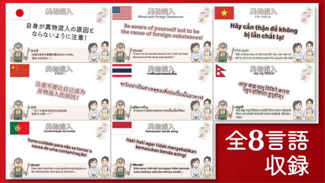 現在『グッドラーニング!for飲食』は日本語・英語・中国語・タイ語・ベトナム語・ポルトガル語・ネパール語・インドネシア語の全8言語で受講可能となっています。