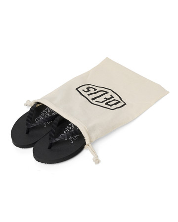 素材と履き心地にこだわり、一つ一つ丁寧に作られるこだわりの日本製ビーチサンダル。足型から鼻緒の製作まで職人の手作業により作られる。台は合成ゴム、鼻緒は天然ゴムを使用することで、クッション性に優れ、足入れもよくビーチはもちろんタウンユースにも快適な履き心地のサンダル。テキサスを拠点とし活躍するグラフィックアーティストLAND BOYSが手掛ける繊細なDEUS ARTグラフィックをオリジナルプリント。オリジナルコットンポーチ付き